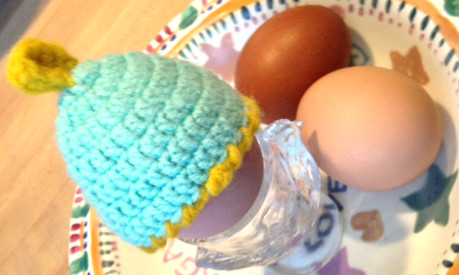 display, with Thimble Farm Eggs, in a cute little Egg Hat.